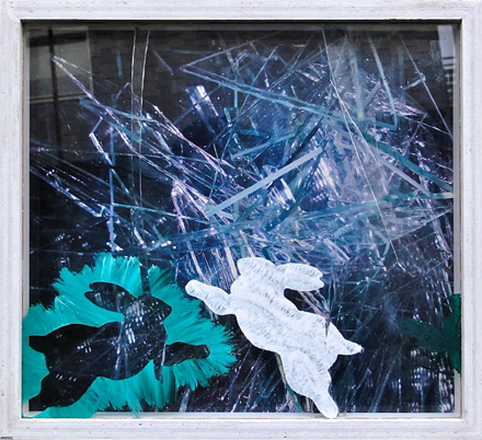Die als Gif-Sequenz animierten Bilder Klaus Küsters basieren auf einer 5teiligen Serie von Hinterglas-Collagen. Die Bilderserie wurde 2007, in der Frühphase der Restaurierung des ehemaligen Stellwerks GwT (Grullbad West) zum Atelier- und Ausstellungsgebäude, im Erdgeschoss präsentiert. Die Ausstellung nannte sich "fünf Wächter"; dabei wurde auf die fünf drachenartigen Tonköpfe Bezug genommen, die Grat-Anfang-Figuren der Dachfirste des Pyramidaldaches.Hase Klaus, Hase Yoko